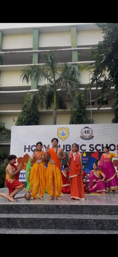Holy Public School celebrated a vibrant Diwali Assembly filled with joy and togetherness. The programme featured a soulful prayer, eco-friendly Diwali messages, a melodious bhajan, and captivating performances depicting Lord Rama’s return to Ayodhya. Students also delivered inspiring speeches in Hindi and English. Principal Mr. Gyanendra Kumar encouraged everyone to spread love, peace, and harmony. The celebration concluded with festive cheer and positivity.